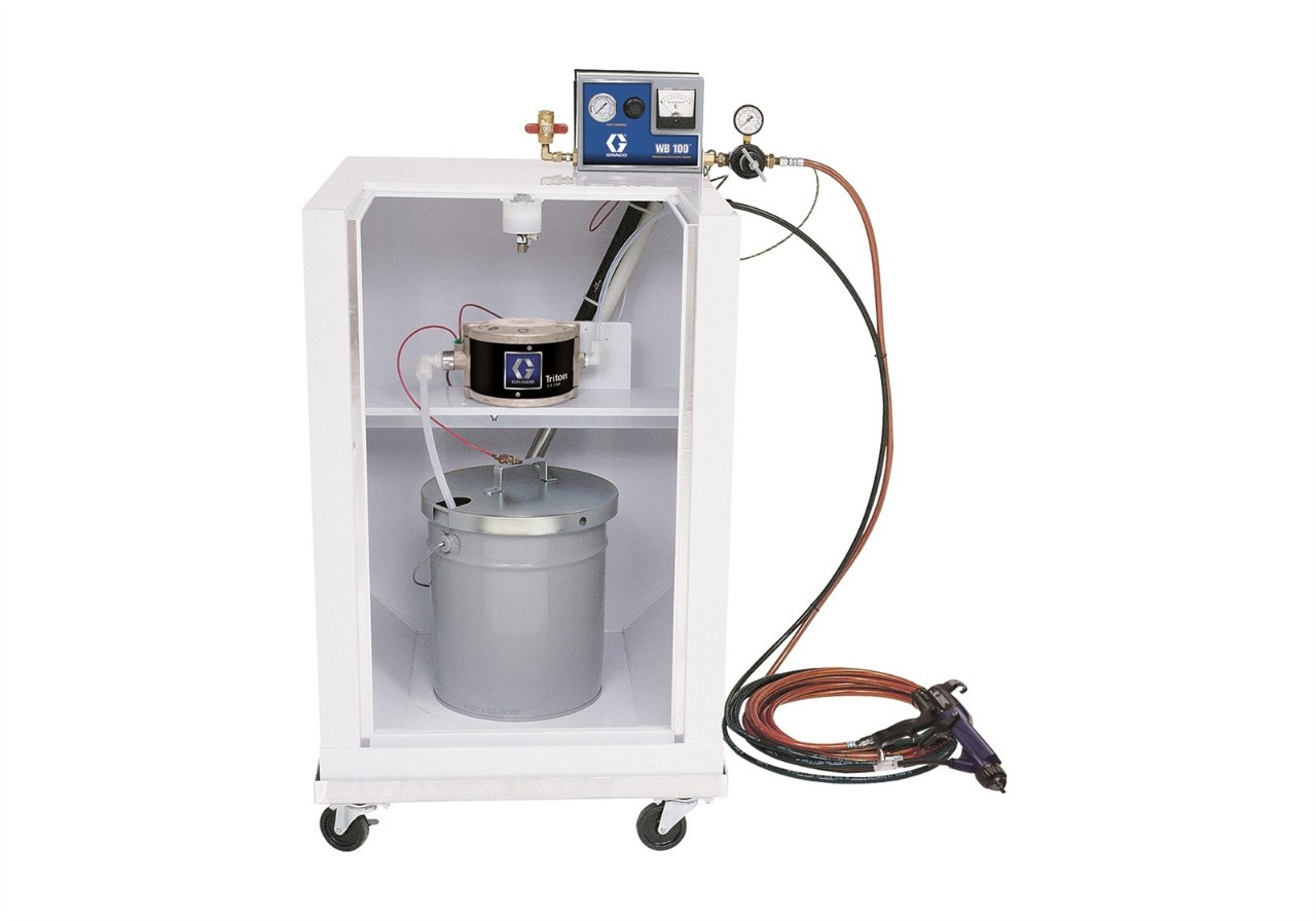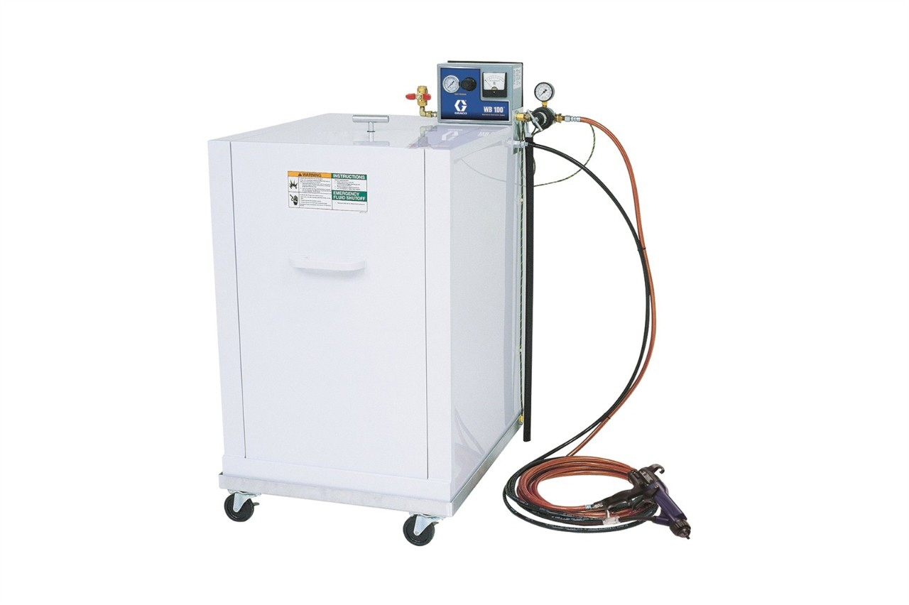 Graco WB100은 정전식 장비로 분사 시에 수성 코팅을 격리하는 신뢰할 수 있는 방법입니다. 스프레이 부스 시스템에 매우 적합합니다.